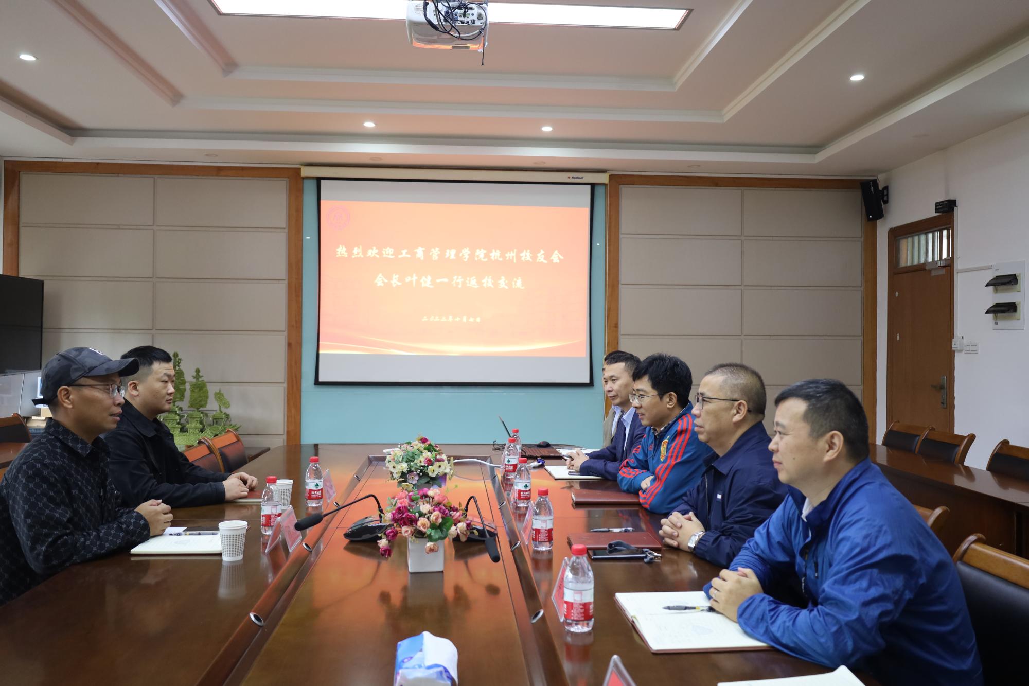 叶健,1999年从浙江财经大学市场营销专业毕业后,先后就职东方通信集团,华立通信集团,富春江通信集团,通过自身不断努力,拼搏奋斗,职务由最初的营销经理,总裁助理直至营销副总裁。在杭州通信行业打磨了13年,成为当时行业内炙手可热的销售精英。现为杭州淘材库科技有限公司总经理。黄卫华代表母校向叶健一行的到来表示热烈欢迎,并表达了加强母校与校友交流、增强校企合作、增进校友之间感情的愿望,希望校友们常回母校看看,多关心母校、关注学院发展。叶健向学院汇报了自己个人和公司的发展,并希望通过校企合作,资源共享,为学院产教融合、人才培养提供平台和载体。双方就相关合作意向进行了交流和座谈。