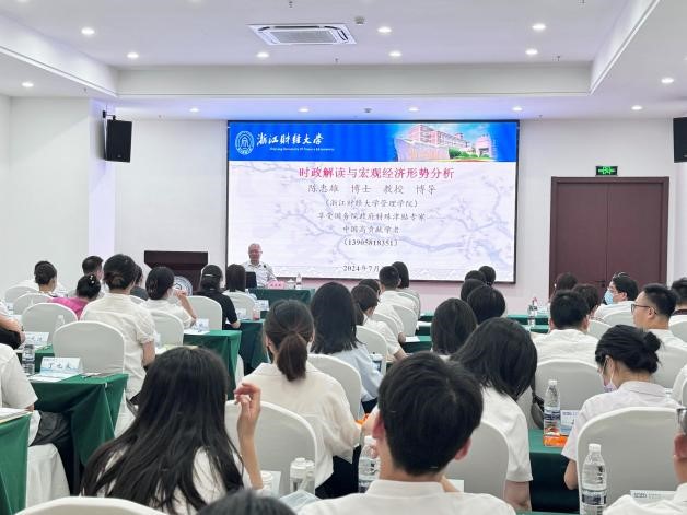 在第二天课程中,浙江财经大学陈惠雄教授为学员们带来了“时政解读与宏观政治经济形势分析”的专题讲座。陈老师以其深厚的学术功底和敏锐的洞察力,对当前国内外政治经济形势进行了全面剖析,为学员们提供了广阔的视野,给学员们带来了深刻的思考。