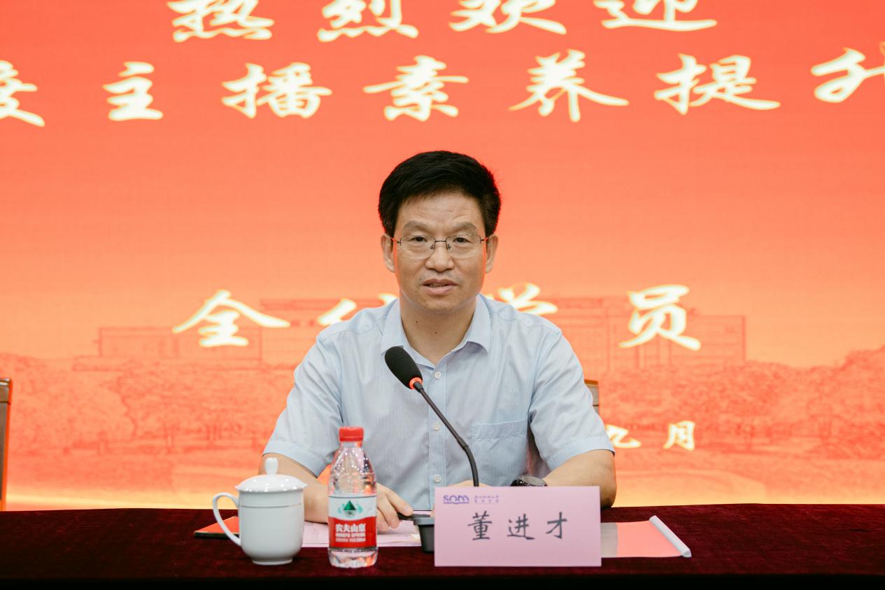 首先,董进才代表学校致欢迎辞,对参加本次主播素养培训班的全体学员表示热烈欢迎,并强调了在当前数字经济浪潮中,提升主播专业素养对于促进直播电商行业健康发展、增强市场竞争力的重要意义,他希望全体学员珍惜此次学习机会,学有所获、学有所成,为推动杭州市电商直播行业的发展贡献智慧力量。