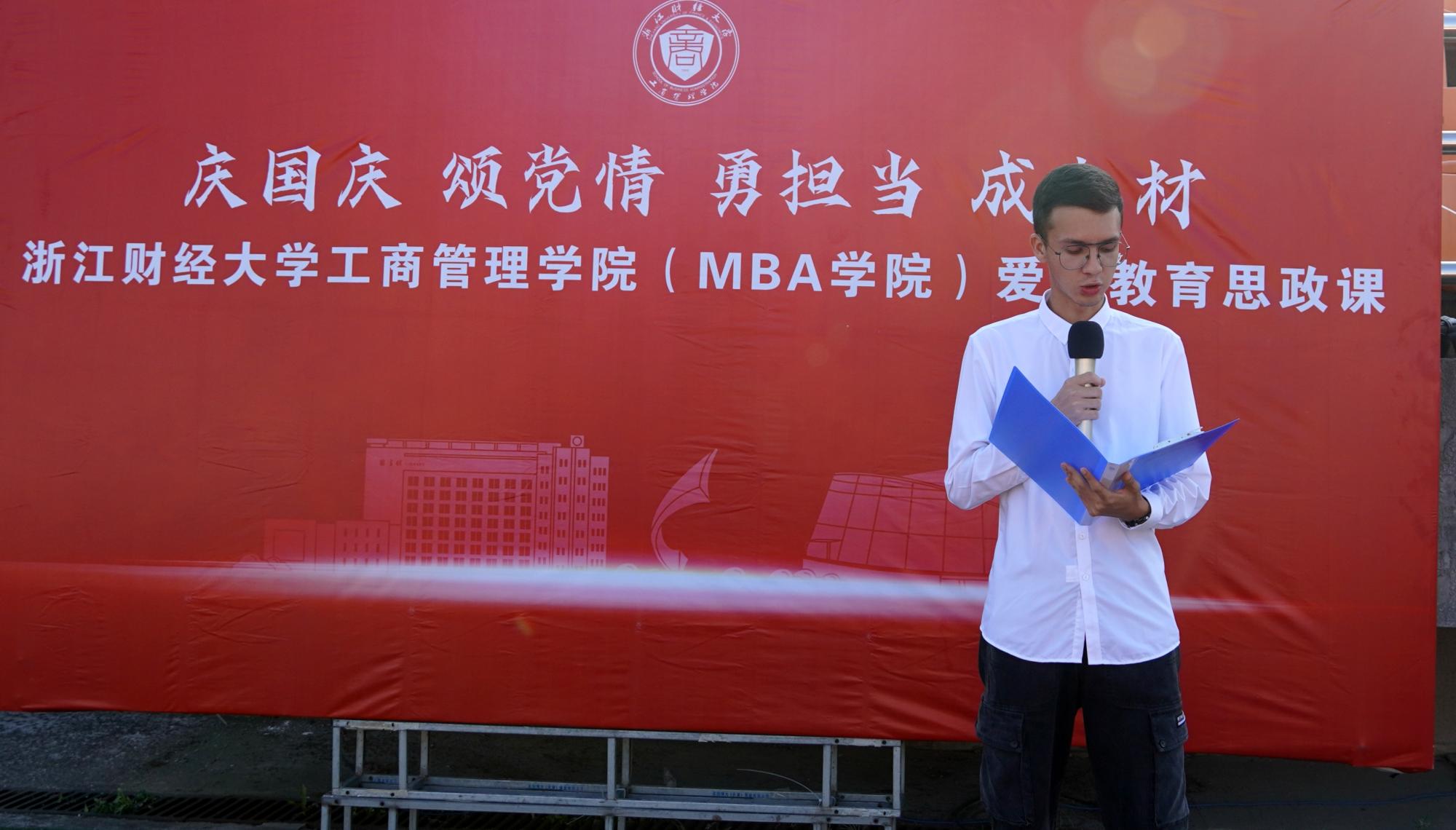 学子何峻毅全运会百米自由泳夺冠的喜讯,赞扬了他们或是维护民族团结、或是为校为国争光的青年之姿;最后,黄书记从四个方面寄语莘莘学子,表达殷切期望——爱国爱民、锤炼品德、勇于创新、实学实干,鼓励工商学子勇立潮头,成为时代浪潮中自信豪迈的掌舵人,为党的百年风华缔造的宏图伟业而倍加自豪,为祖国七十二载奠定的光明前途而奋斗不止!