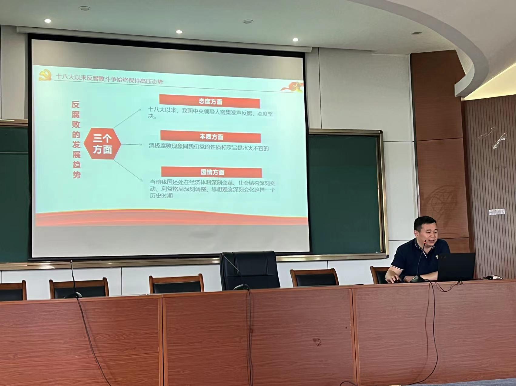 2022年6月7日下午,在学院楼217报告厅举办2022届毕业生党员廉洁从业教育。院党委副书记、纪委书记吴玻以“防腐拒变守初心 激浊扬清创未来”为题,要求全体毕业生党员守牢底线,廉洁从业。