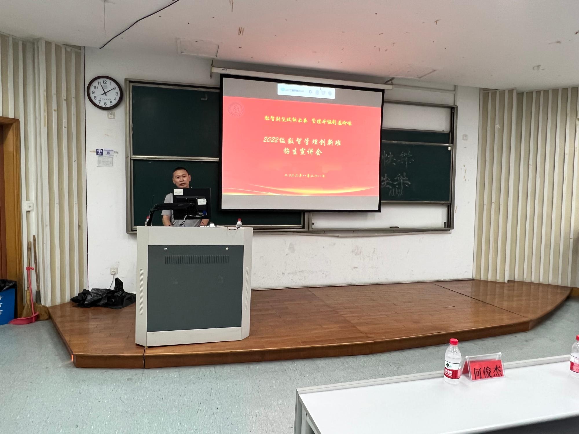 专业建设成果,数智管理创新班培养目标、优势与成效等,并希望22级新生好好把握大学生活,努力学习,不负青春。