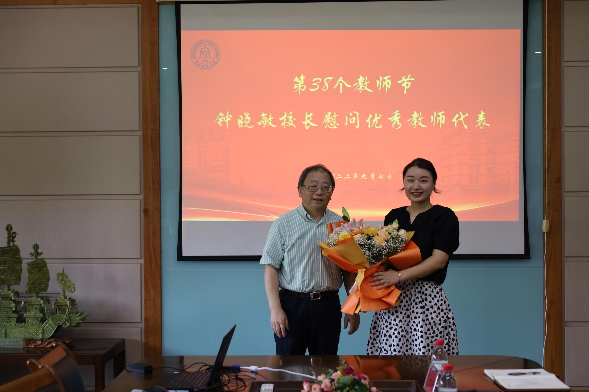 钟晓敏看望并慰问了学院教师代表应瑛老师,并详细询问了她的教学、科研和工作生活情况。钟校长对应瑛老师在工作中的努力和成长给予肯定,并勉励她继续保持良好的工作状态,牢记为党育人、为国育才使命,为学校各项事业的发展贡献智慧和力量。