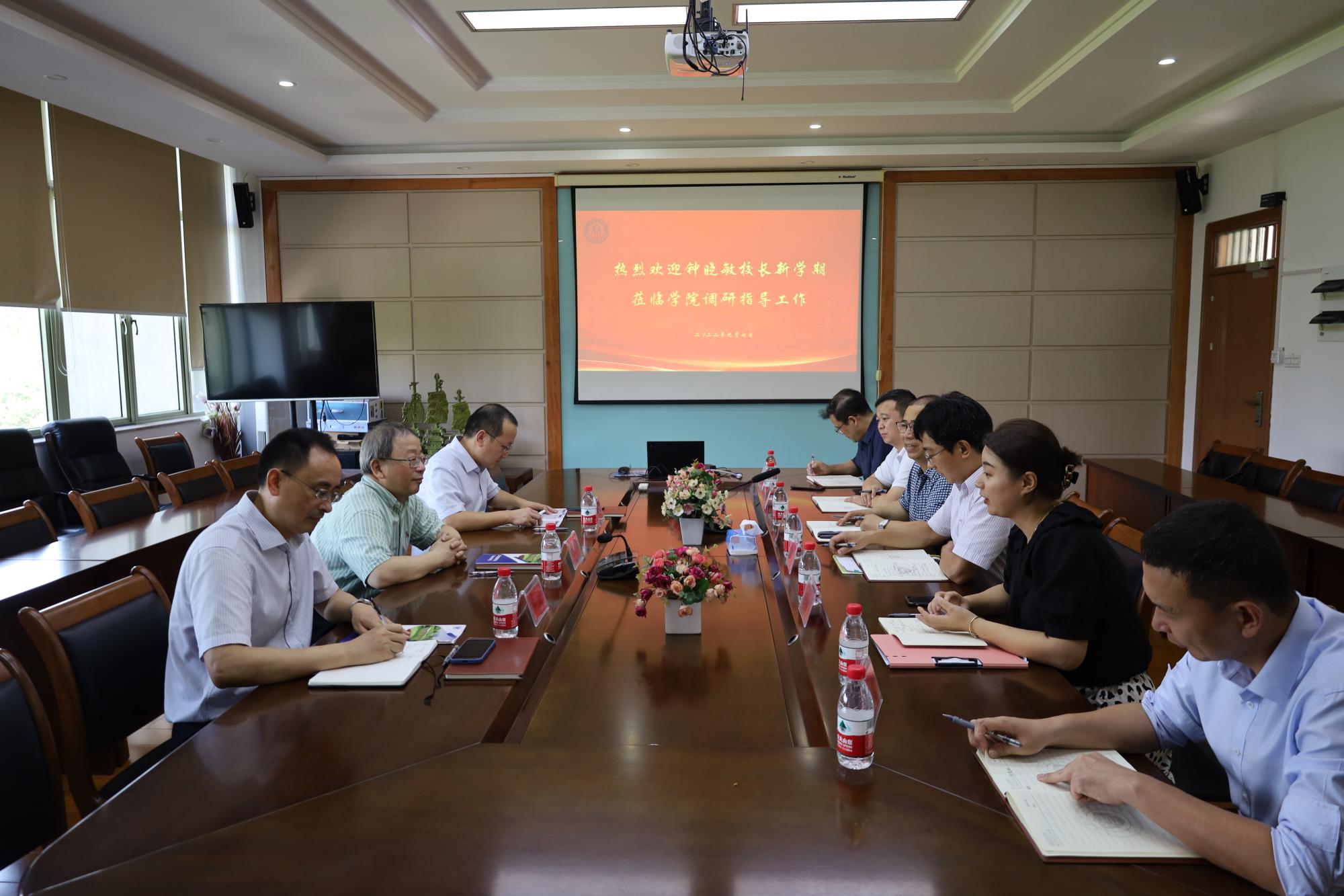 调研座谈会上,钟晓敏听取了学院领导班子关于学院申博、人才队伍、学科建设等方面的汇报。他强调,“打铁还需自身硬”,学院要高度重视,凝练学科发展方向,加强教师团队实力,提炼学科发展优势,制定具体目标,积极调动各方力量参与到博士点申报中来,加大外联,强化影响,久久为功。