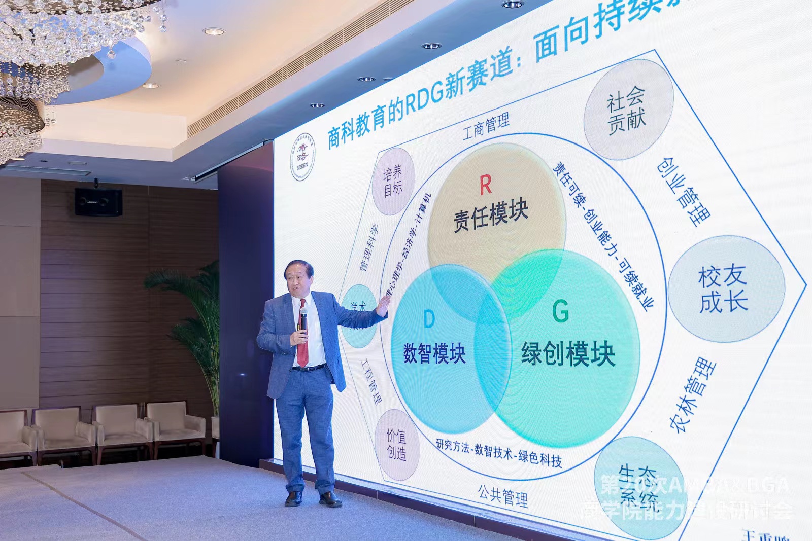 会上,AMBA/BGA中国区总顾问王重鸣教授做了主题为《新展望新动能新赛道新发展》的精彩演讲,商科教育RDG新赛道是商科教育领域中的一种新的发展趋势,并认为商学院需要加强教育改革和创新,以适应未来商业环境的发展和变化。商学院需要重新审视教学目标和内容,推进制定持续影响力模块,改进样板专业,建立更加全面和综合的教学体系和课程体系,加强学生的实践和体验式教学,注重个性化培养,校企合作,加强师资队伍建设和国际交流,从而得以实现商科教育RDG新赛道的目标和使命。