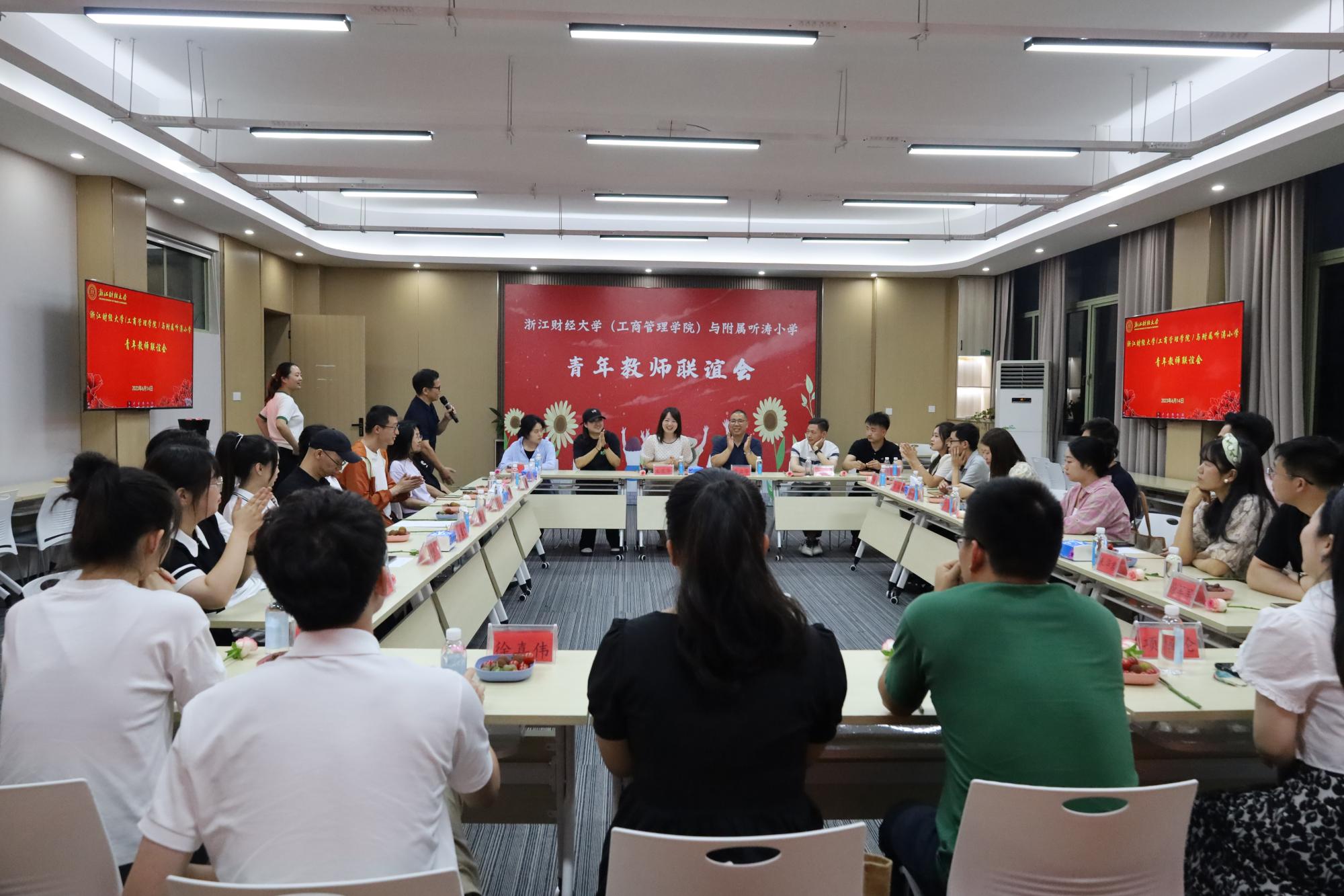 与附属听涛小学青年教师联谊会。本次联谊会近有30名青年教师参与,联谊会持续了两个半小时,由学院工会郭军灵主席主持,学院党委黄卫华书记、听涛小学王卫华校长分别发表了重要讲话。