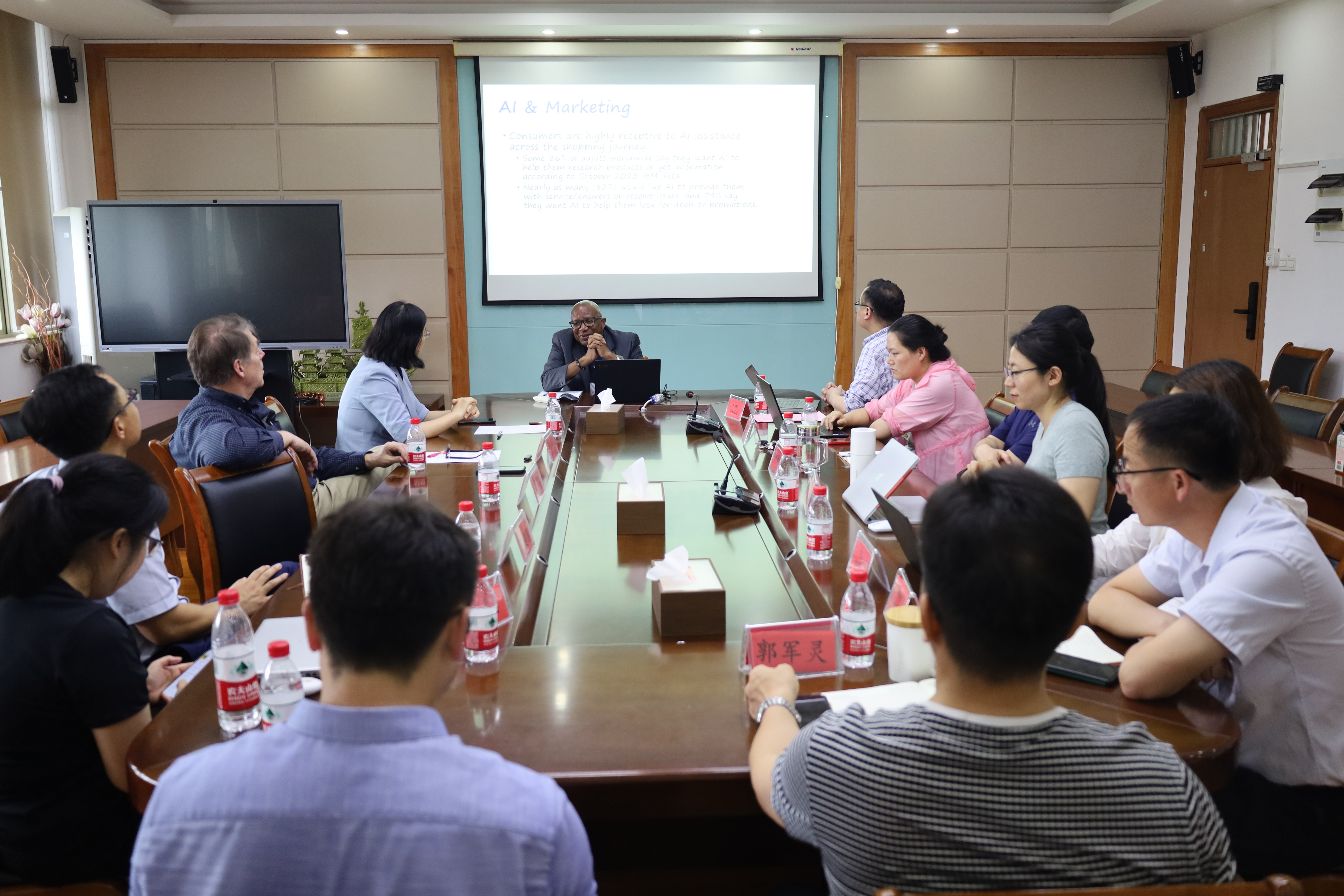 随后,托莱多大学的Ainsworth Anthony Bailey教授发表了题为“Impressions of Artificial Intelligence in Academia and Marketing”的报告。Bailey教授探讨了人工智能在学术界和市场营销领域的应用前景与挑战,结合实际案例,深入浅出地讲解了AI技术如何助力学术研究与课程教学,激发了与会教师的广泛兴趣和热烈讨论。