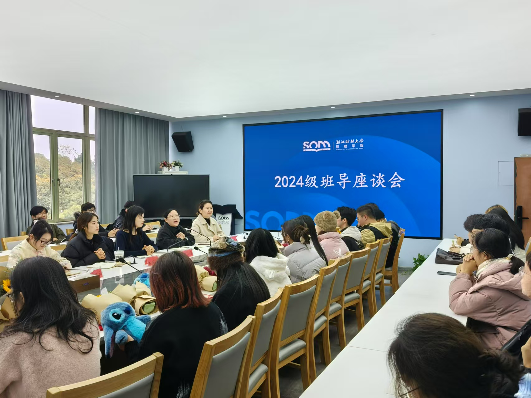 于学院楼416会议室举办24级新生班导座谈会暨表彰大会。学院党委副书记陈小芳,24级新生辅导员,24级新生班导和24级新生班长参会。