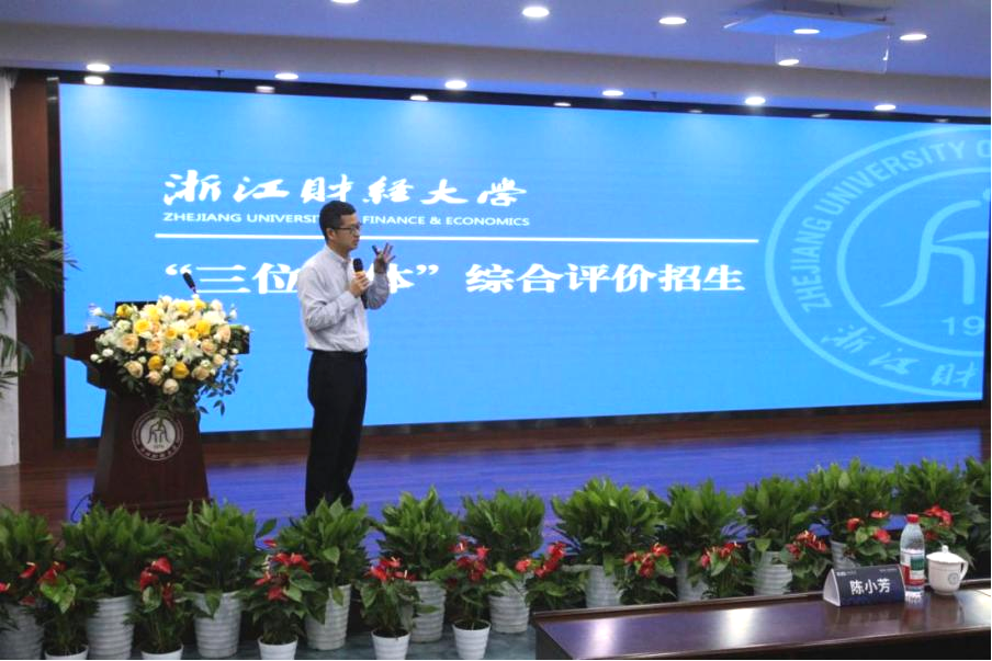 学生处副处长金国权聚焦学子关切,系统介绍了浙江财经大学的办学特色与招生政策。他详细解读“三位一体”招生的选拔标准与优势,强调“综合评价、多元录取”的核心理念,鼓励学生通过这一渠道展现综合素养。“三位一体不仅是升学机会,更是对个人全面发展的认可。”金国权以近年录取数据为例,剖析政策亮点,现场学生纷纷记录要点,为未来报考积累“干货”。