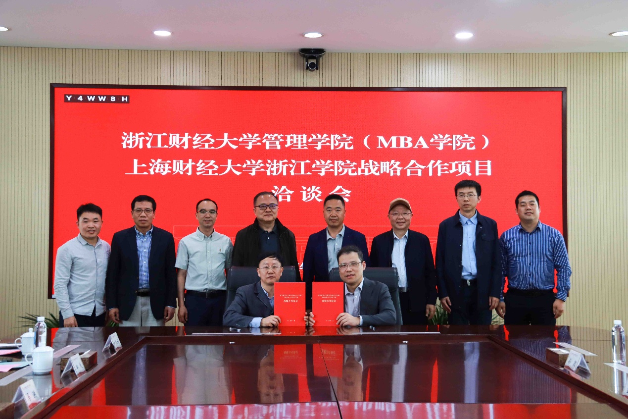与上海财经大学浙江学院在浙江金华举行战略合作签约仪式。上海财经大学浙江学院院长马洪、副院长邱风,学院执行院长董直庆、副院长戴维奇等双方代表出席活动。