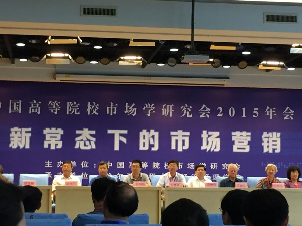 市场营销系教师靳明教授、陈水芬教授、王跃梅教授、王建明教授、吴诗启副教授、陈颖老师携市场营销方向研究生王丛丛、王秋欢参加了本次会议。本次年会以“新常态下的市场营销”为主题。