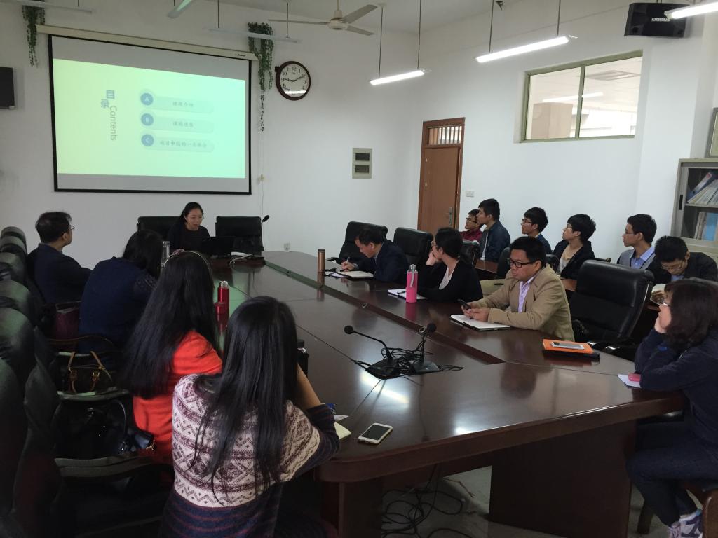 曾垂凯就其2016年国家自科基金项目申报书的内容进行了报告,王建明教授、戴维奇副教授从申报书选题、研究内容、研究方法、创新点、关键问题、文献综述等方面进行了细致的点评。与会老师围绕其申报书内容进行了充分的交流,提出了很多建设性的意见。整个活动过程氛围热烈、互动深入、内容充实。