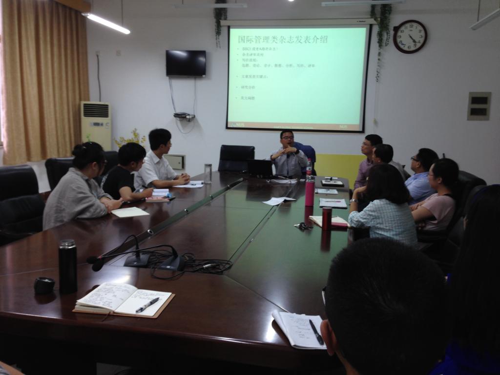 博士以自己所做的四个研究为例,详细介绍了二元动态互动研究范式。该研究范式是宋博士开创的新型研究范式。传统上,组织与管理心理学研究侧重于个体的动机、情绪、行为等领域,宋博士突破这种单一个体的研究范式,主张应该研究人际互动关系,研究个体如何通过互动来影响他人。在研究方法上,宋博士率先在管理和心理领域采用体验样本法(Experience-Sampling Method)收集高频次的数据,研究个体即时的心理和行为,及其对组织管理研究的价值和意义。宋博士的方法和范式,获得了许多有趣的研究结果和研究发现,这些成果大多公开发表在国际Top期刊。与会师生对这种新型研究范式很感兴趣,纷纷提问和交流,气氛相当活跃。随后,宋博士还跟师生们分享了自己在高级别国际期刊发表论文的体验和心得、以及在担任重要国际期刊副主编过程中的一些切身体会。