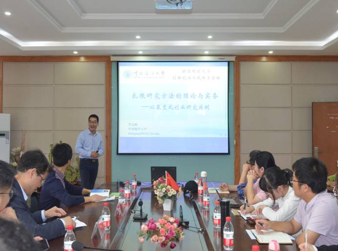 邀请中国海洋大学李志刚教授在会议室410作了《扎根研究方法的理论与实务——以裂变式创业研究为例》的学术讲座。副院长王建明教授主持讲座。本次讲座吸引了40余位校内外对扎根理论感兴趣的教师以及研究生参加。