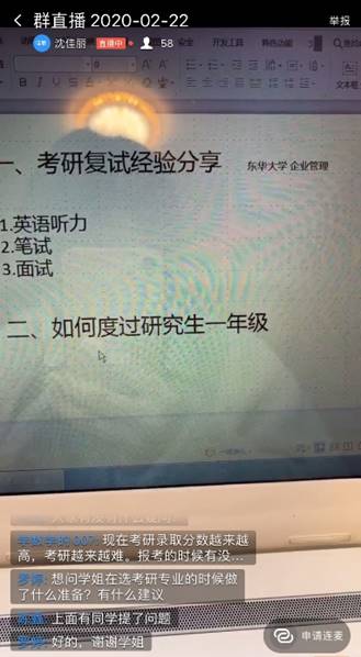 短短一个半小时的直播答疑,同学们对研究生复试有了更加深入的了解。通过直播的方式,也更好的拉近了与同学之间的距离。后续,物流系也会针对学生需求通过云课堂直播分享更多内容。