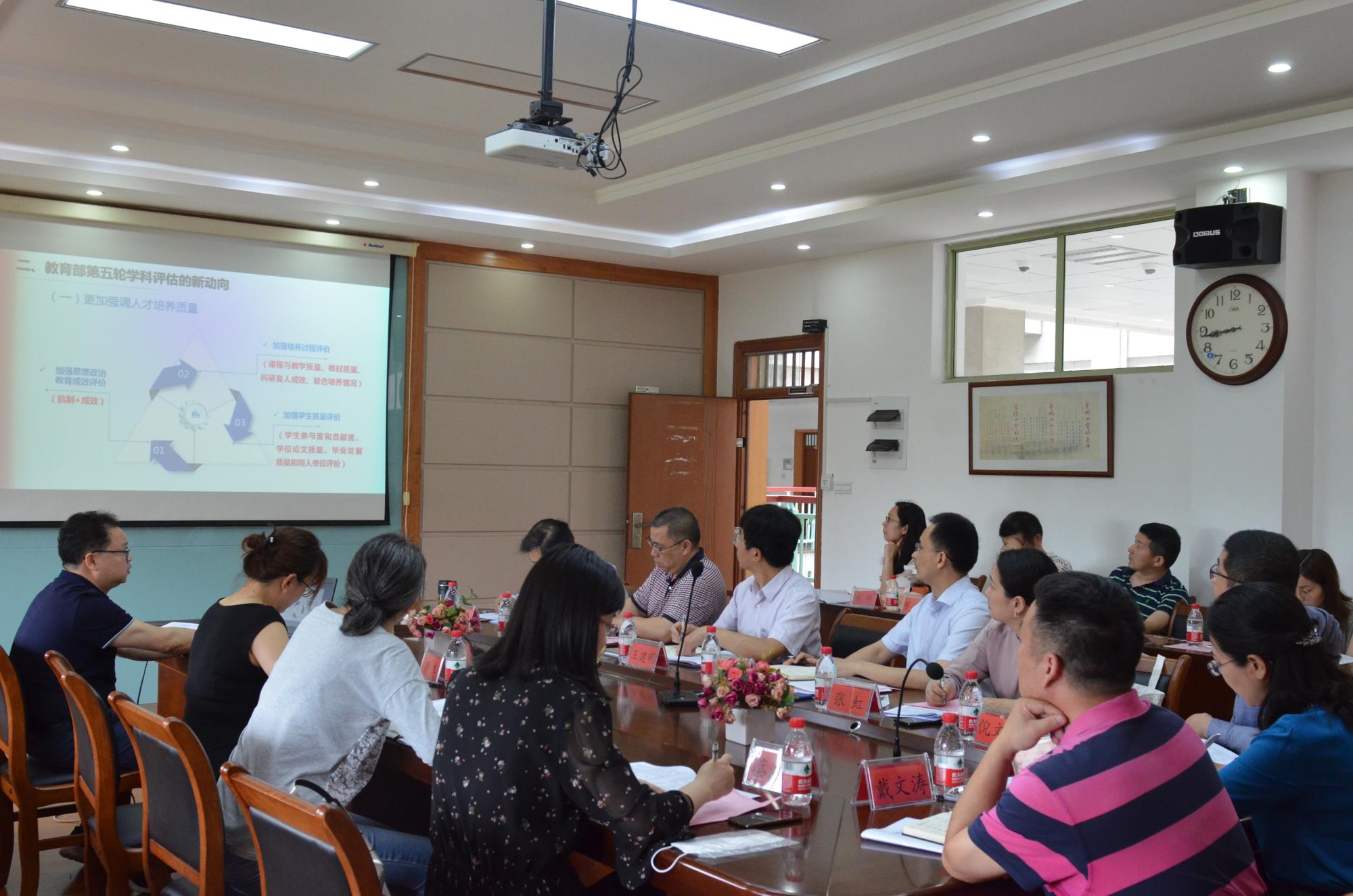 会议首先听取了党委研工部部长、研究生院副院长陈星平题为《新形势下全力做好学科与研究生教育工作》的报告。接着,与会的各位领导和工作人员围绕博士点申报表(初稿),展开了广泛的讨论,提出了具体的修订意见。最后,参与本次会议的科研骨干教师也纷纷就博士点申报表提出各自的建议。