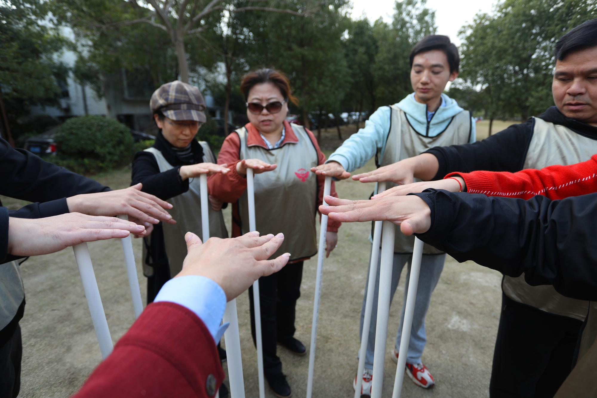 上午大家早早地来到了嘉兴的梅花洲团建拓展基地。首先开展的团建项目是破冰活动。破冰活动旨在让教师们消除紧张尴尬、陌生感,使他们快速熟悉周围环境,活跃团队气氛、加强团队互信。工商球神直播
