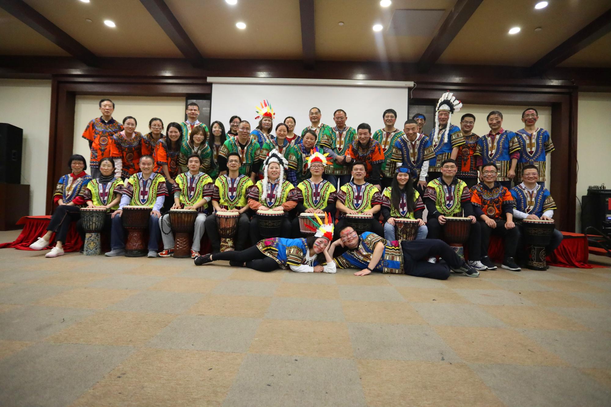 第三个团建项目是非洲鼓团建。非洲鼓起源于西非部落,属于土著民族的传统乐器。通常是挂在脖子上边走边打,而并非放在地上敲打。最特别的是,这乐器一定要用手敲打,一手调整音调的高低,另一手敲出节奏。非洲鼓演主要特色在于其音乐属性可以广泛被运用在特殊节庆场合,所谓“会说话的鼓”。具有自己的民族特色,无论是制鼓的材料、形状和演奏技巧都是独特的。大家通过非洲鼓团建项目,更好地提升的教师们的执行力和领导力,也让团队更加和谐。