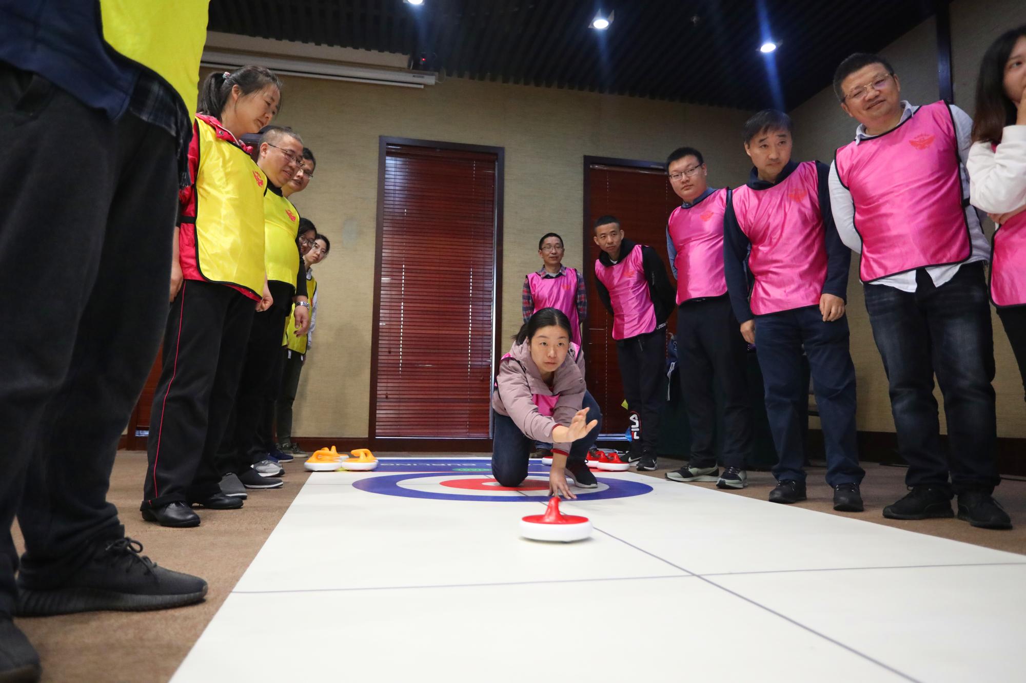第四个项目是旱地冰壶。“陆冰壶”是由冰壶演变而来的“旱地冰壶球”。冰壶运动是一项高雅的体育健身活动,传统的冰壶是由特制的优质石材经过高精度研磨加工而成。传统的冰壶只能在光滑的冰面上进行,是一种冰上运动,并且是国际冬季奥林匹克运动项目,是一种集运动、竞技和娱乐于一体的运动项目。但由于冰壶制作工艺复杂,选材苛刻,所以费用高昂,且只能在冰面场地上开展,队场地的要求也很严格,从而极大地限制了此项运动的开展与普及。教师们在冰壶团建过程中,不断地计算并且实践,既开拓思维,又锻炼身体,更从中收获知识和快乐,并且延伸到教学工作与生活中去。