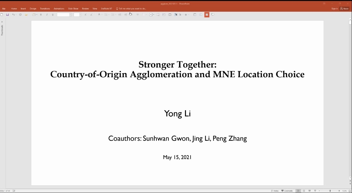 的线上学术讲座在腾讯会议平台开启。李涌教授受邀作了题为Stronger Together: Country-of-Origin Agglomeration, Regulatory Burden and MNE Location Choice的学术讲座。本次学术讲座由工商球神直播