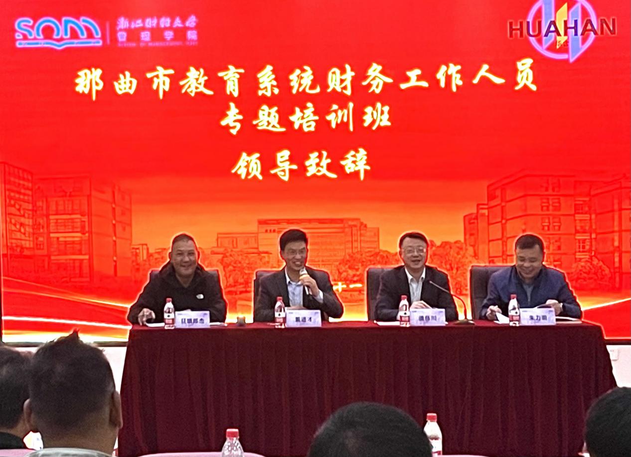 董进才首先致欢迎辞。他代表浙江财经大学向出席开班仪式的各位领导和学员表示热烈欢迎,并介绍了学校基本情况。他强调,本次培训班是根据那曲教育系统财务工作实际需求量身定制,课程内容涵盖财务会计、预算管理、内部控制、审计监督等多个核心领域,旨在全方位提升学员的财务管理能力。同时,培训将采用理论授课、案例分析、小组讨论和实践操作相结合的方式,确保学员们能够学以致用,将所学知识直接应用到实际工作中,提升专业素养,为那曲市教育事业的财务管理工作注入新的活力。