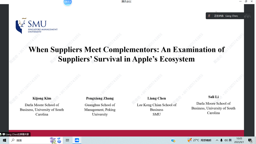 教师带来了一篇正在推进中的论文《当供应商遇见互补者:对苹果生态系统中供应商成员资格的影响》。