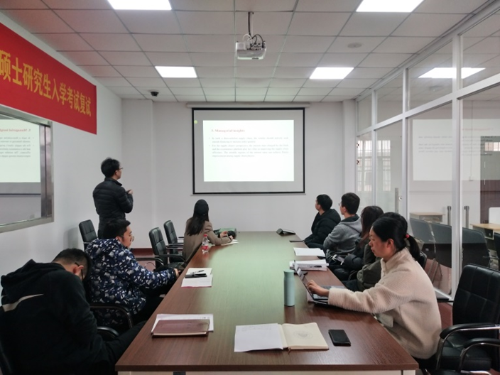 在学术交流环节,供应链管理系的周学广老师和吴军老师针对银行与电商平台的利率设定、博弈结构以及数值仿真等方面提出了相关的意见。最后,在场的所有老师针对学术论文的投稿过程以及学科前言方向展开了深入交流。本次的学术交流为大家相互启发新思路,实现后续合作研究奠定了基础。