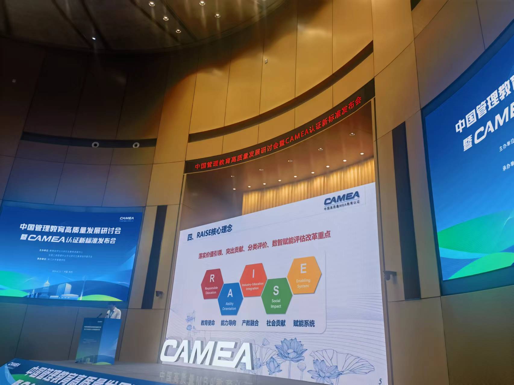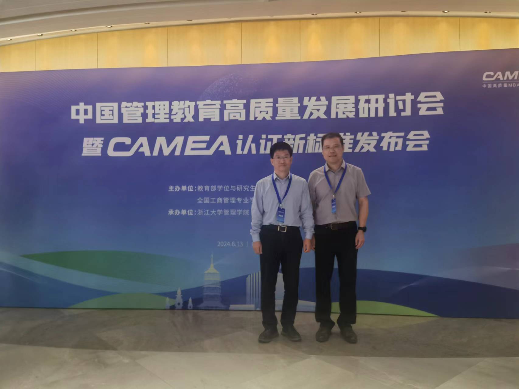 院长董进才、副院长戴维奇一行参加了在杭州举办的“中国管理教育高质量发展研讨会暨CAMEA认证新标准发布会”。本次会议由教育部学位与研究生教育发展中心、全国工商管理专业学位研究生教育指导委员会联合主办,浙江大学球神直播