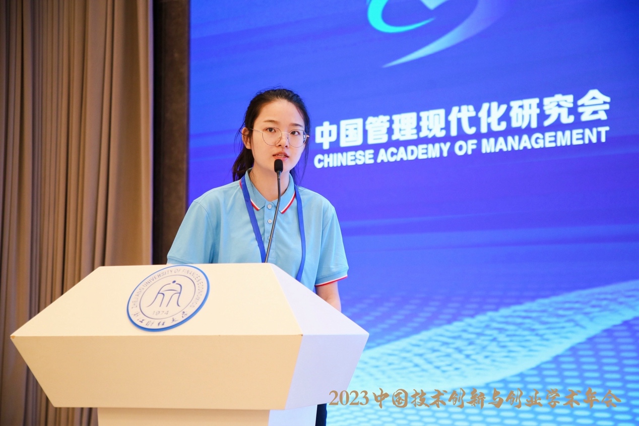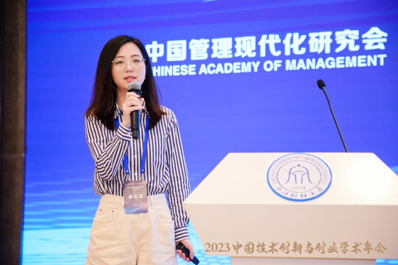 第一位嘉宾是来自浙江财经大学的胡双,她的报告题目为“高管团队的创业导向、企业的数字化转型与创新绩效”。研究着重探讨:以企业CEO为核心的高管团队的创业导向以及其企业层面的后果。并将企业数字化转型、高管团队的创业导向等核心构念进行了细致区分。她认为,创新是推动国家经济改革和发展的重要力量,企业应承担并发挥创新主体的作用。