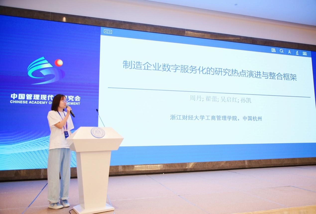 第五位嘉宾是来自浙江财经大学的翟蕾,她的报告题目为“制造企业数字服务化的研究热点演进与整合框架”。她认为,数字服务化起源于数字技术与服务化的交互作用,尽管制造企业数字服务化的研究正在逐步兴起,但其仍属于一个新兴的研究领域。此研究提出了制造企业数字服务化的一个整合性研究框架,为主题之间的相互联系提供了新的逻辑。