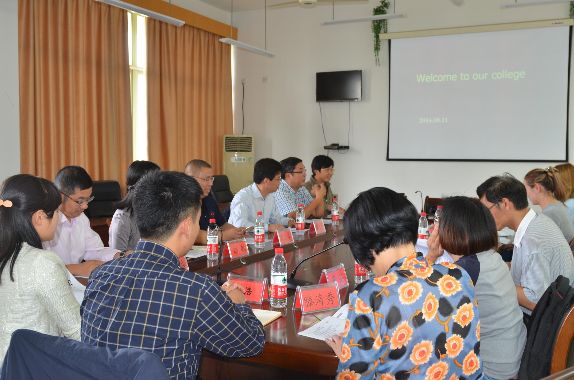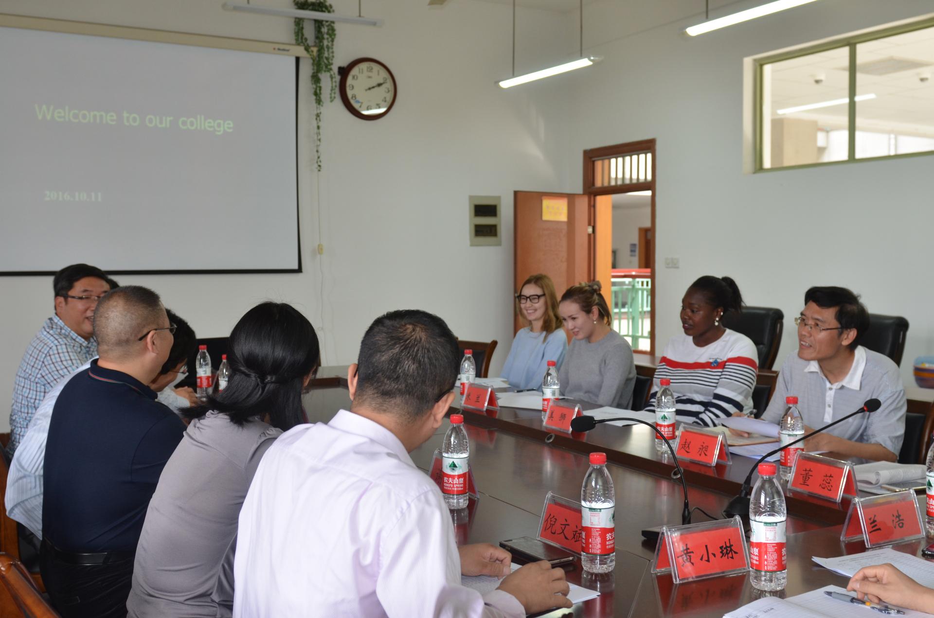10月11日下午,学院院长董进才老师、党委书记黄卫华老师,党委副书记谢敏老师,副院长王建明、倪文斌老师,国际学院副院长李汉强老师以及两个学院相关老师与球神直播app