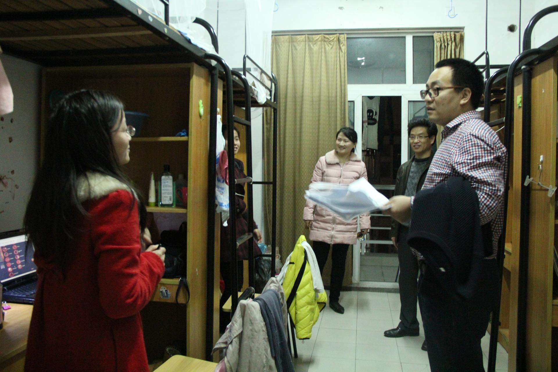 文明寝室建设,积极配合省教育厅到我校全面检查工作,学院领导于2016年3月7日晚到成蹊苑生活园区进行了寝室大检查,参加此次检查工作的领导有学院院长董进才老师、党委书记黄卫华老师、副院长谢敏老师,以及学办主任胡星平老师、团委书记刘远琳老师以及辅导员俞佳、喻一珺、余亮等老师。他们分别对成蹊苑51#、49#、57#、31#、44#、48#等工商球神直播