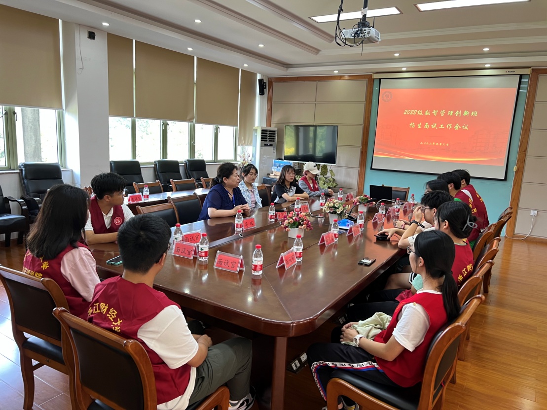 在学院数智管理创新班面试工作领导小组的领导下,学院制定了《2022年“数智管理创新班”招生面试方式和重点》、《2022级数智管理创新班考生面试须知》等相关办法,设置了身份确认签到、考生抽签、考官抽签、场内工作、志愿服务等多个工作组。来自工商球神直播