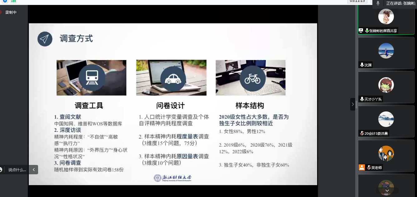 2022年12月22日,《商务统计与软件应用》课程举办统计调研报告线上决赛,会计学院、工商球神直播