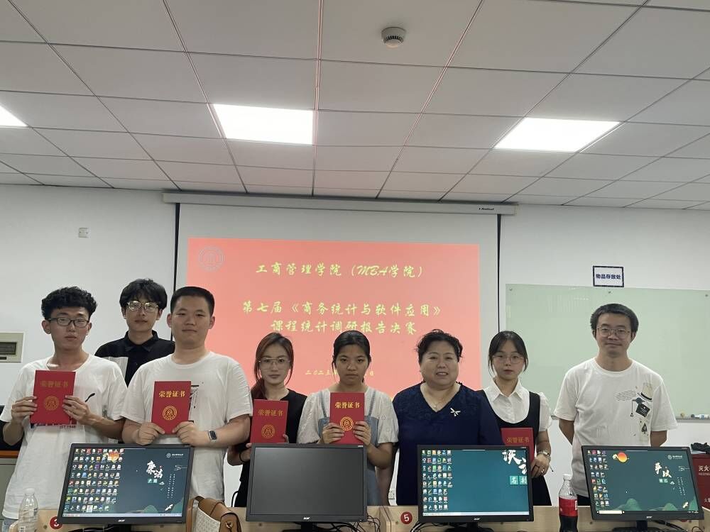 2023年6月15日,《商务统计与软件应用》在F104举办统计调研报告决赛,沈渊老师、邓浩然老师担任决赛评委。