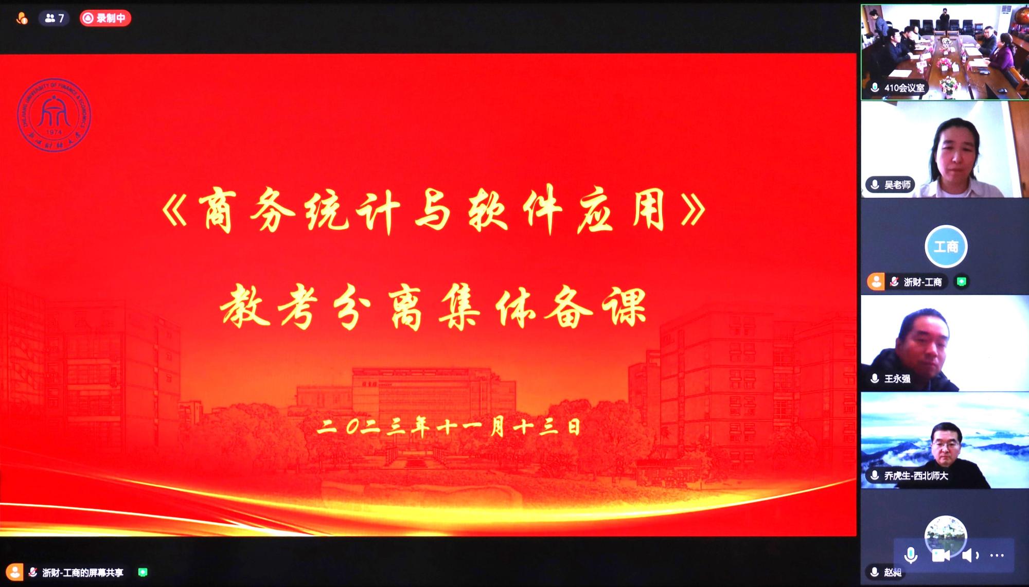 11月13日上午8点半,《商务统计与软件应用》教考分离集体备课线上线下研讨会在学院5410顺利举行。线下参会人员有工商球神直播