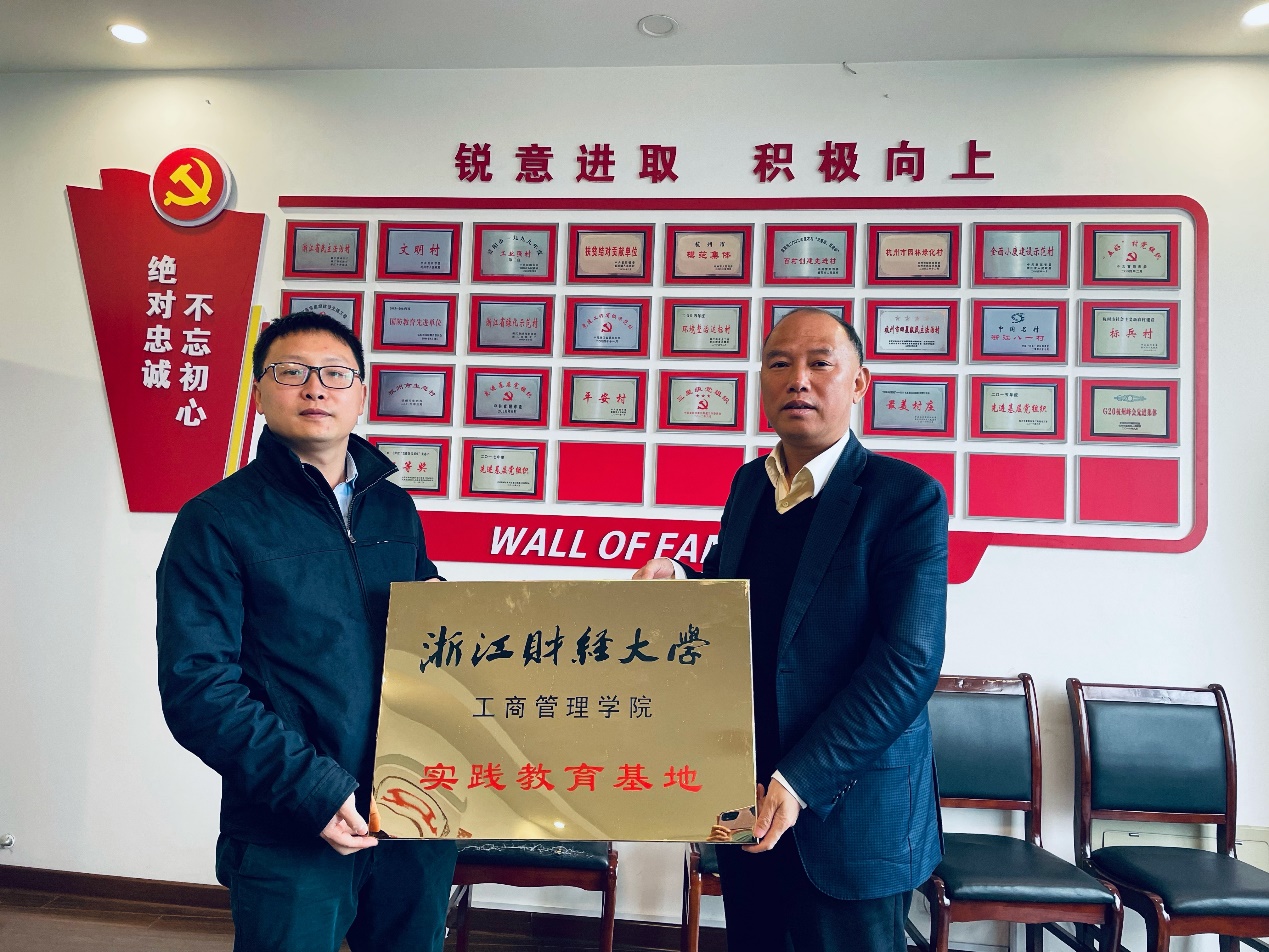 与富阳区春江街道八一村举行共建实践教育基地挂牌,学院春江街道办事处挂职教师丁军老师与八一村村委组织书记、村委会主任羊少剑书记等代表出席了本次挂牌仪式。