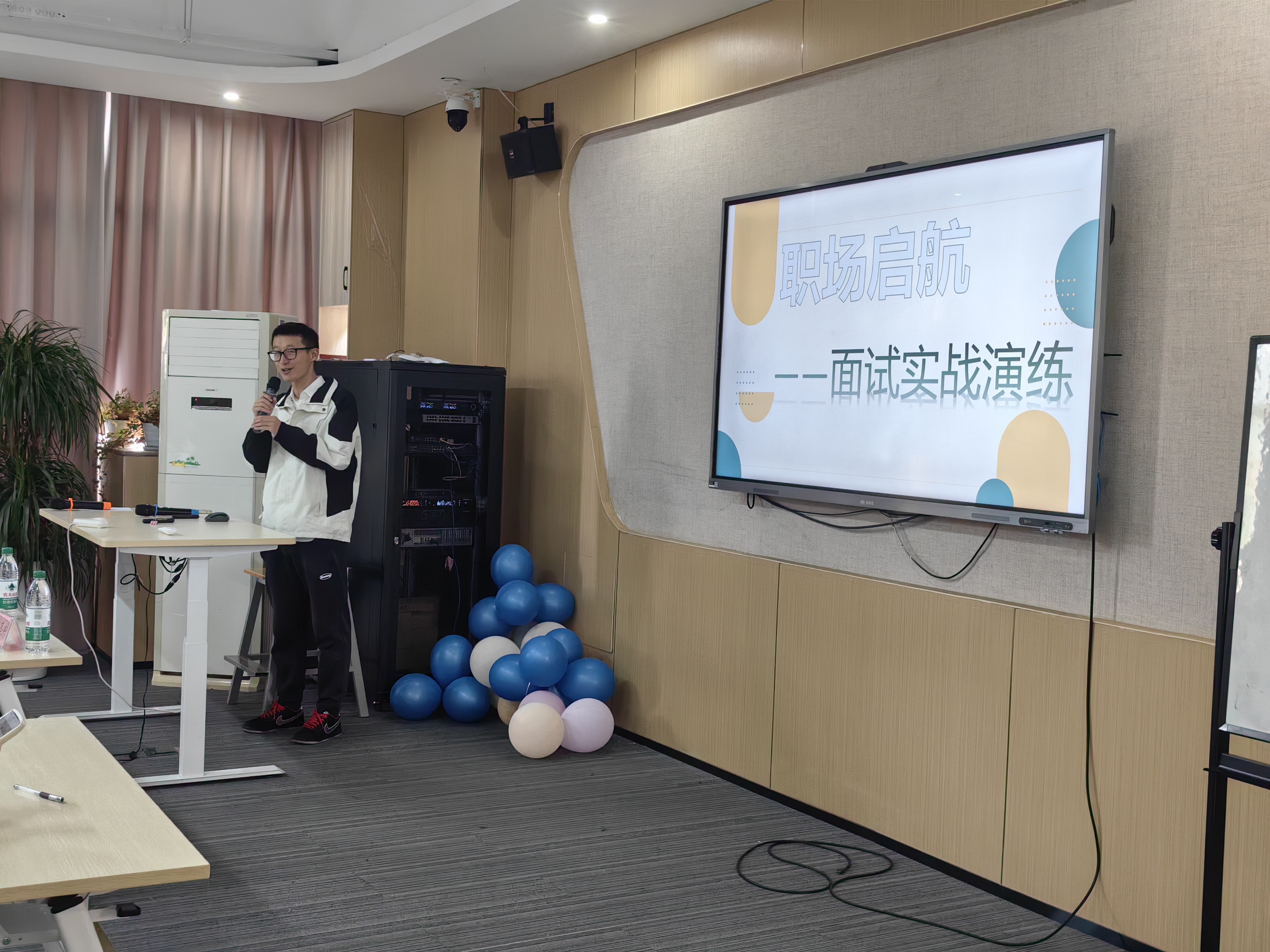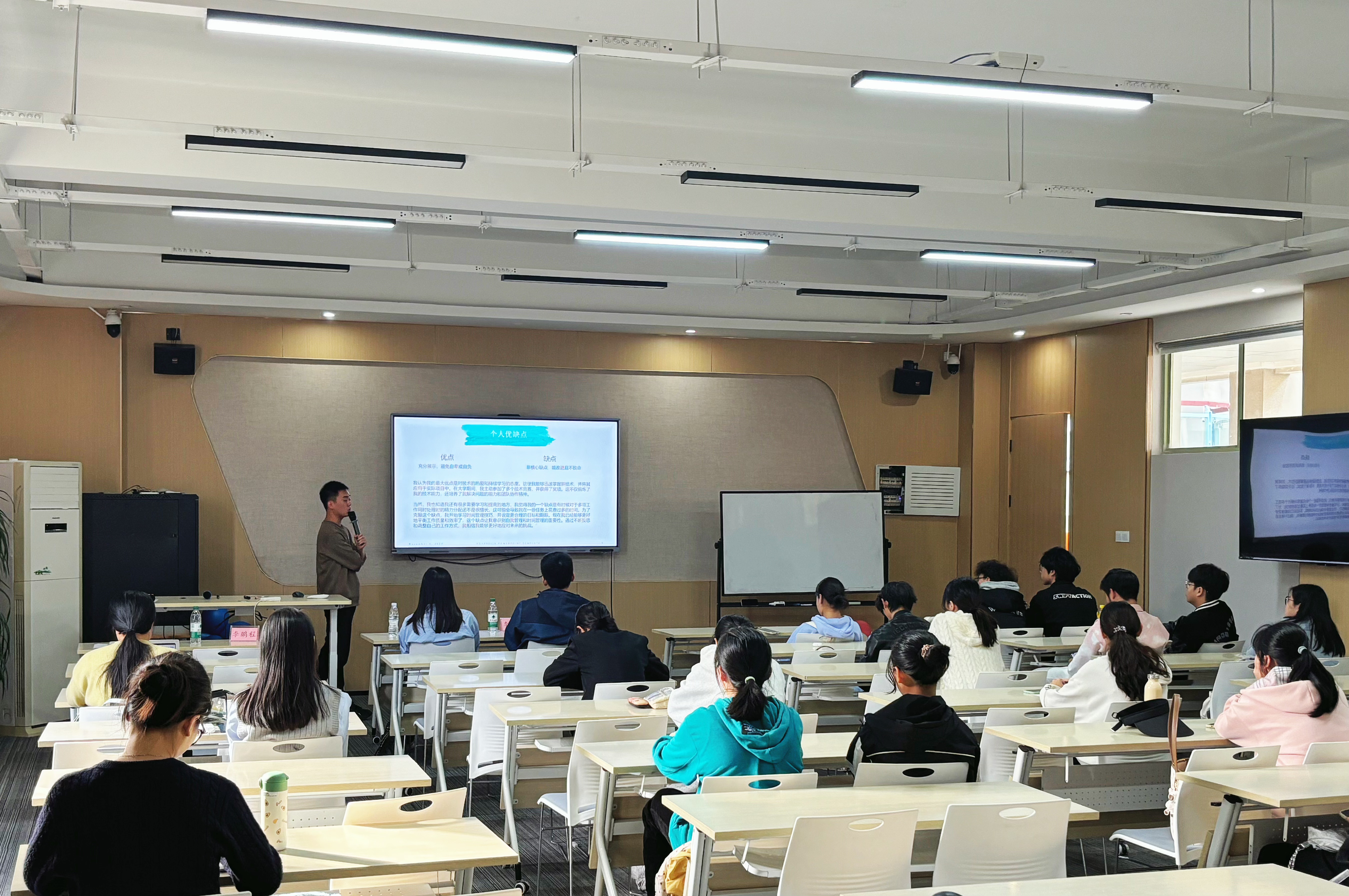 本次活动分为两大模块,首先由李鹏程老师为同学讲解面试有关技巧。开始讲述了当今企业面试的方式大多为结构化面试,具有试题固定、程序严谨、评分统一等特点。在这之后,列出了面试中的常见问题,例如“你的职业规划未来怎么考虑”,“为什么想选择我们公司工”,“你的实习和实践经历,以及遇到的挑战”等等,并针对每个问题进行具体的分析。