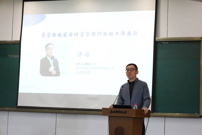 接着,三位专业硕士研究生(MBA)校友结合自身求职和工作体会,依次进行了主题报告。球神直播app 2012级MBA校友许诺,现任杭州绿城资本控股有限公司董事长助理,主要讲述了研究生阶段的学习对他职业发展的影响,并分析了当前多个行业的发展态势,为研究生们未来行业的选择提供了借鉴。球神直播app 2012级MBA校友李晓娟,现任国金期货有限责任公司杭州营业部总经理,主要介绍了期货行业的现状、基本业务、岗位类别等,让在校生深入了解了期货行业的相关工作。球神直播app 2013级MBA校友鲍祺烨,现任国信证券股份有限公司浙江分公司财富三部总经理,重点分享了金融行业的就业前景,并结合金融行业人才的选拔要求介绍了研究生应当如何进行职业发展规划。
