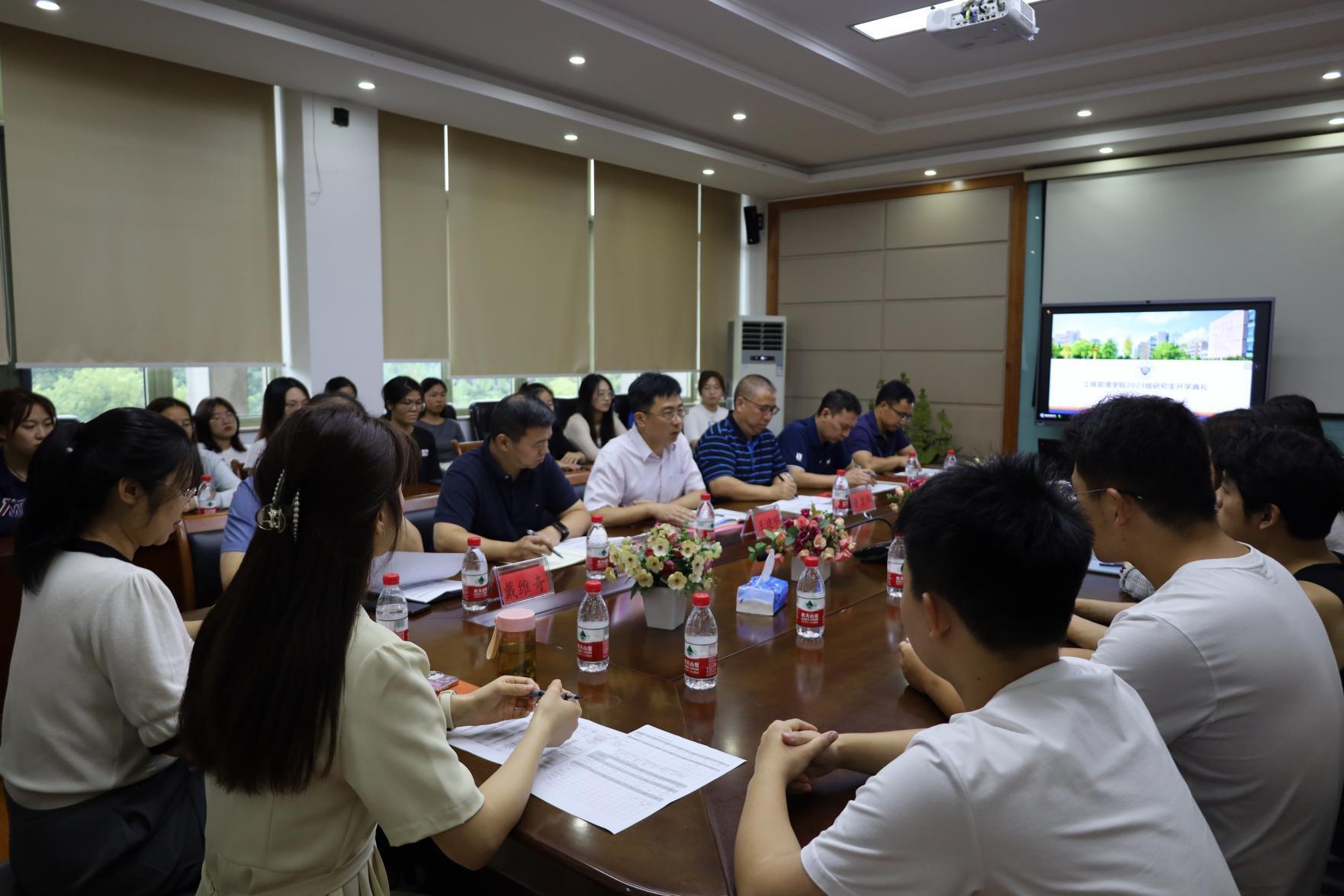 2023级硕士研究生开学典礼在学院410会议室隆重举行。学院党政班子成员王建明、黄卫华、吴玻、张雷、戴维奇,硕士生导师代表王建国,研究生秘书、辅导员以及2023级全体硕士研究生出席本次开学典礼。典礼由学院党委副书记吴玻主持。