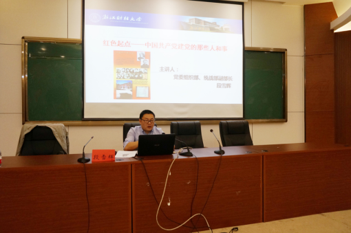 第五讲校党委组织部副部长段雪辉老师,段老师主讲题目是“红色起点——中国共产党建党的那些人和事”。告诉我们在动荡不安的环境下,建立共产党是当时社会主义好的选择。今天的共产党来之不易,理想和信念是每一个人乃至我们党是一直坚持下去的动力。到了现在,我们党和国家的事业蓬勃发展,最不能忘记的是追思那些最开始为共产党做出贡献的、不怕牺牲的先进分子们。