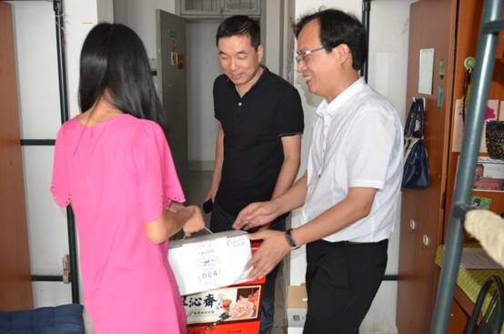 9月13日下午,黄建新副校长来到桃李苑生活园区,看望了2012级工商2班的一位特困生,并详细询问了她的学习和生活状况。