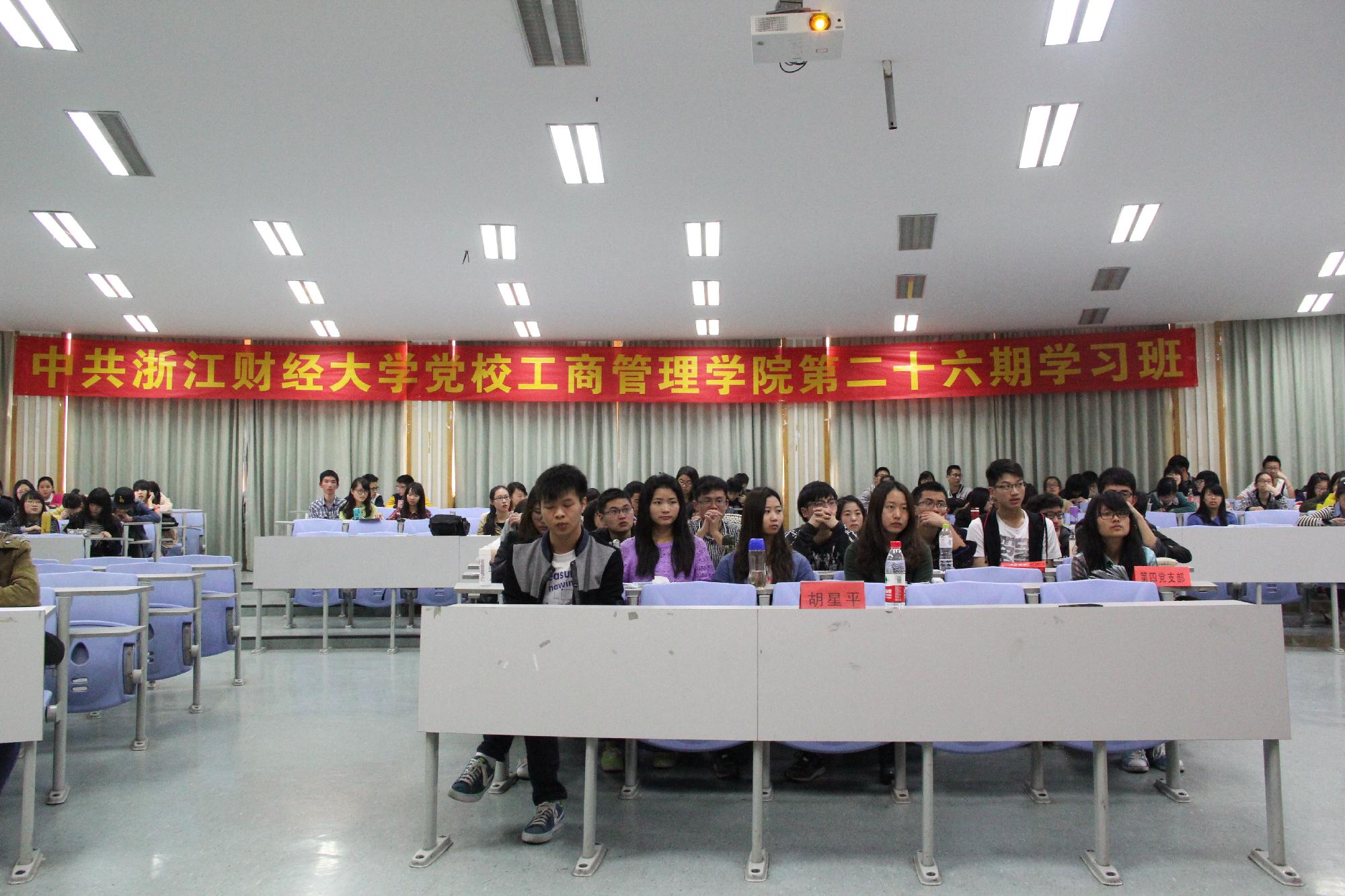 本期党校学员培训班共有五期,分别由华正学老师,华金才老师,曹桢老师,罗金艳老师,申屠莉老师为学员授课,解析了关于中国梦的几个问题,深入探究马克思主义党建学说,强调了党员发展的程序与要求,要将真正优秀的学员优先发掘出来,并教育学员明确入党标准,端正入党动机,以实际行动加入党组织。讲述了加强与改进新形势党的建设的必要性与挑战性,教授学员们作为当代大学生的历史使命,从而激励学员为建设更繁荣昌盛的国家而奋斗!