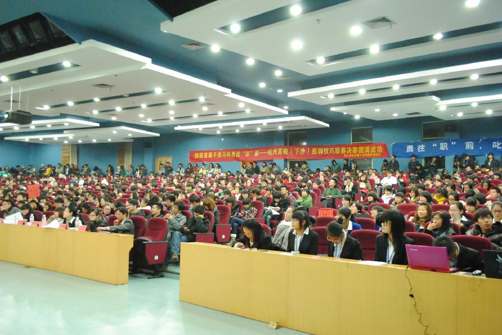 12月3日六时,第一届“千里马杯”杭州高校应聘技巧联赛于我校学术一号报告厅顺利展开。十二位经过层层选拔的选手登上舞台,一展风采。本次到场的评委有:浙江财经学院人力资源管理协会校外知道老师顾宇,浙江千里马人力资源开发有限公司董事长洪文祥,中财集团化建业杭州基地培训经理冯习林,杭州欧倍兰家居有限公司HR总监徐周鹏,中商实业有限公司人事行政经理胡洪林,达利集团人事行政经理游洪光,以及工商大学和杭州师范大学的老师。