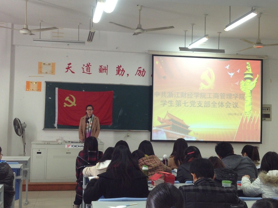 12月4日下午,学生第七党支部在学院楼109教室召开了全体会议。会议由支部副书记潘进鸿主持,支部全体党员、预备党员参加了本次会议。会议主要听取与讨论了本次6名发展对象(入党积极分子)的入党志愿,并作出表决。