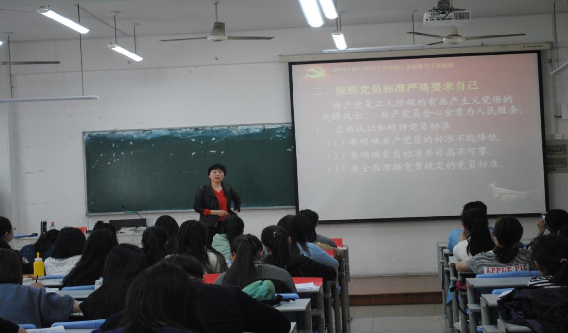 2016年4月19日13:00-16:30,学生党员之家在工商学院楼211教室举办党课校学习班第四、五讲。第四讲主讲人罗金艳老师——法学院党委副书记共同完成此次培训,第五讲主讲人华正学老师——浙江财经大学马克思主义学院院长。