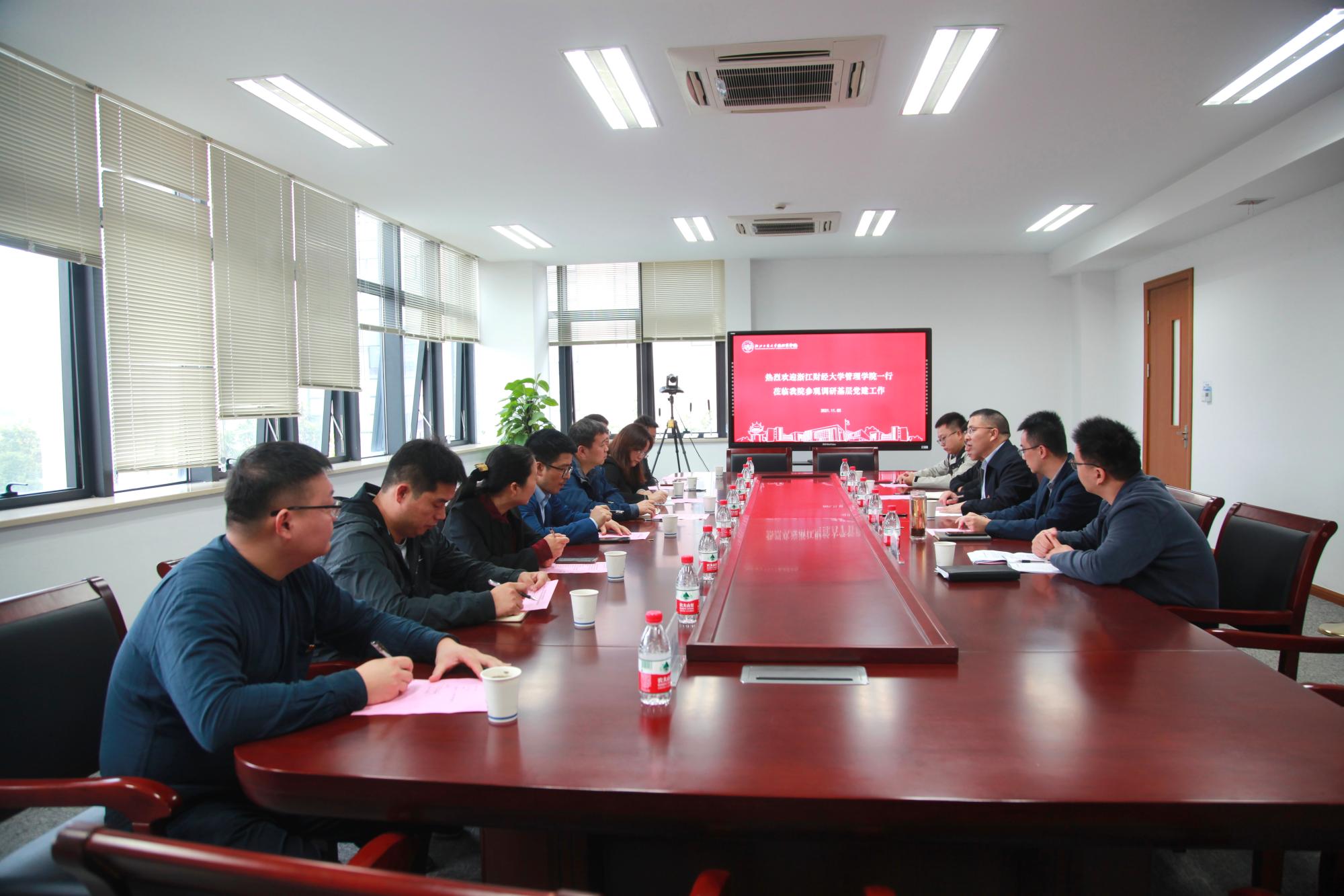 党委副书记吴玻、党委委员邱夏、党委委员胡星平及支部书记等一行8人赴赴浙江工商大学杭州商学院考察学习党建工作,浙江工商大学杭州商学院党委书记古家军、党委副书记狄瑞波以及相关部门负责人参加此次座谈会。