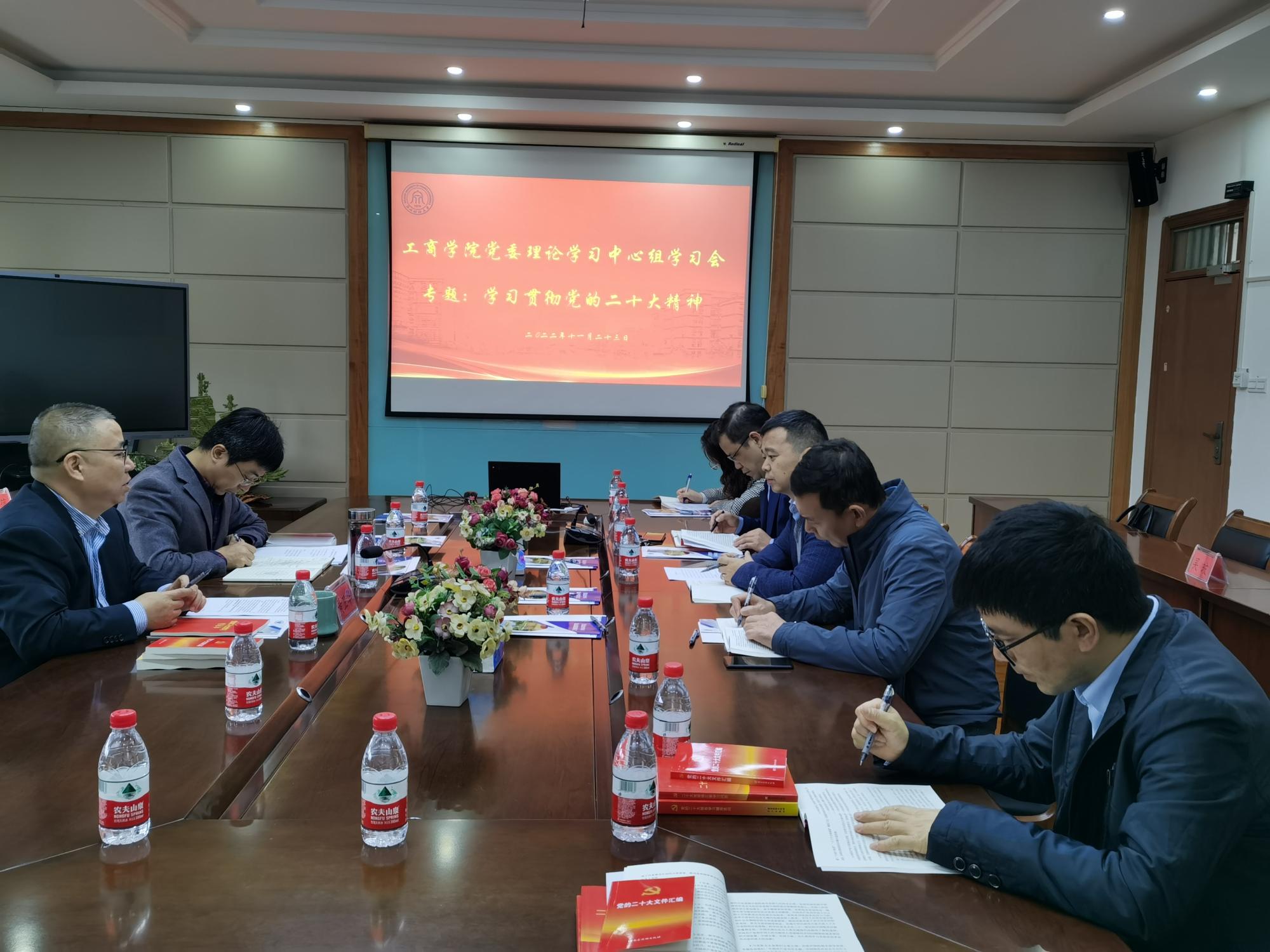 党委理论学习中心组召开专题学习党的二十大精神。学院党政领导班子出席会议。会议由工商球神直播