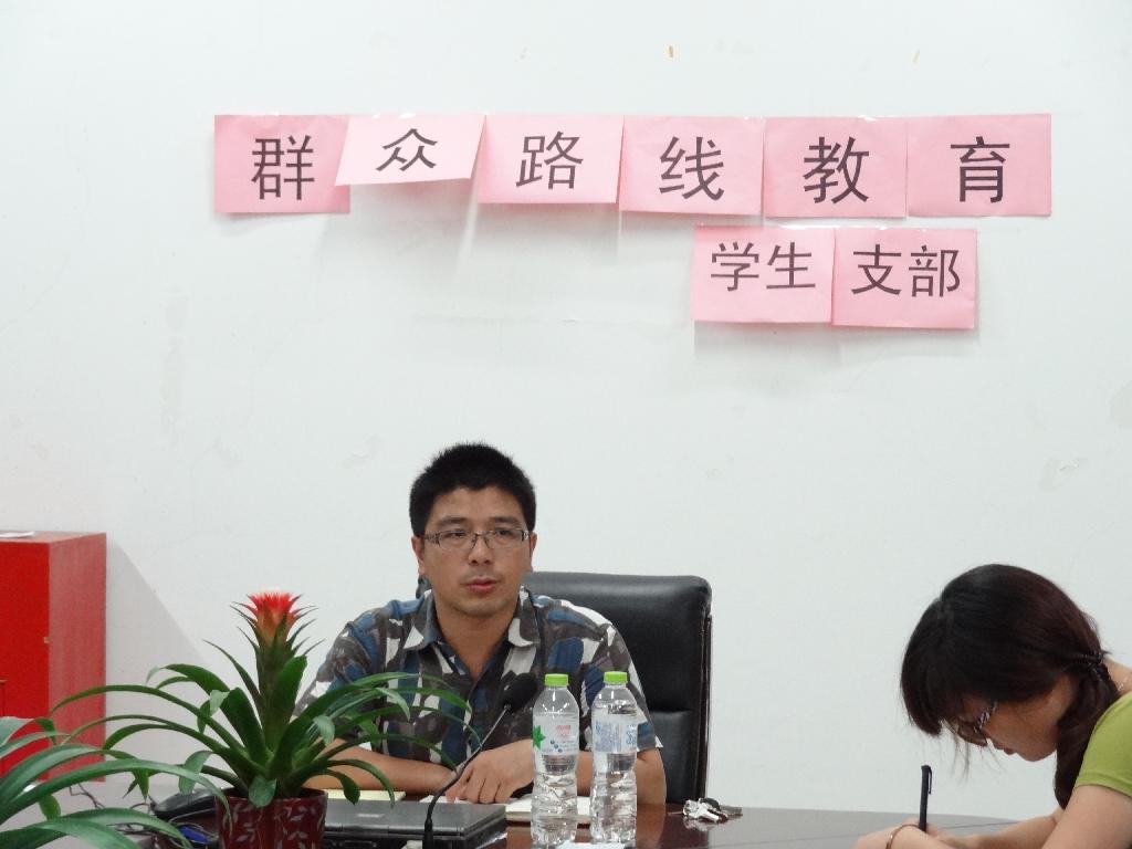 会议伊始,胡老师简单介绍了09届毕业班党员的就业情况,并大致概括了政策改革以来,学校的党员发展情况及其相应的变化,以此推出今日的主题“党的群众路线教育”。