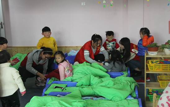 活动开始前,启智幼儿园园长长给志愿者同学简要介绍了幼儿园基本情况并告知了活动中要注意的事项。志愿者同学们在老师的引导下与一群群天真无邪的孩子们进行了互动,他们帮孩子们穿好衣服鞋子,还帮助老师给女孩子们梳理头发。同学们充分发挥他们的爱心与热情,细心地照顾着这些活泼可爱的小朋友。